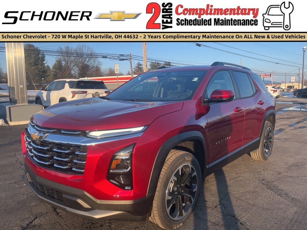 Recent Arrival! 2026 Chevrolet Equinox LT Radiant Red Tintcoat** 2 YEARS COMPLIMENTARY MAINTENANCE INCLUDED WITH EVERY NEW AND USED VEHICLE PURCHASED AT SCHONER CHEVROLET **Not available with special finance or lease offers. Dealer not responsible for pricing errors and equipment discrepancy. Some pictures for illustration purposes only. Must finance with GM Financial & take advantage of GM Rewards Card Sales Sign Up and Spend Offer. Dealer added accessories are extra. **With approved credit. Terms may vary.Chevy Drives America Big Beautiful Bill Tax Deduction: Available for eligible individual buyers on new qualifying vehicles assembled in the US. Only applies to interest paid in tax years 2025-2028 on new debt contracted after 12/31/2024. Tax deduction subject to change and filing requirements. Income restrictions and other restrictions and limitations may apply. Consult your tax, legal, or accounting professional if you have questions. This information does not constitute tax, accounting, or legal advice. Deduction subject to federal laws and regulations and manufacturing constraints.GM Rewards Card Sales Sign Up and Spend Offer: Eligible Customers: New, GM Card customers who apply and get approved for the new GM Rewards Card via a dealership QR code or text to apply functionality, and then spend a minimum of $1000 at the dealership at time of purchase/lease, can use this offer towards the purchase/lease of an eligible new and unused model. Vehicle equipment includes Convenience Package II (2-Way Power Driver Lumbar Control Seat Adjuster, Autosense Hands-Free Programmable Power Liftgate, Cabin Humidity and Windshield Sensor, Driver 8-Way Power Seat Adjuster, Dual-Zone Automatic Climate Control, Evotex Seat Trim, Heated Wiper Park, Intermittent Front Rain-Sensing Wipers, Overhead Sunglass Storage, Programmable Universal Home Remote, and Wireless Phone Charging For Portable Devices), AWD, 3.47 Final Drive Axle Ratio, 4-Wheel Disc Brakes, 6 Speakers, ABS brakes, Air Conditioning, Alloy wheels, AM/FM radio: SiriusXM, Auto High-beam Headlights, Brake assist, Bumpers: body-color, Cloth Seat Trim, Compass, Delay-off headlights, Driver 6-Way Manual Seat Adjuster, Driver door bin, Driver vanity mirror, Dual front impact airbags, Dual front side impact airbags, Electronic Stability Control, Emergency communication system: OnStar and Chevrolet connected services capable, Four wheel independent suspension, Front anti-roll bar, Front Bucket Seats, Front Center Armrest, Front Passenger 4-Way Manual Seat Adjuster, Front reading lights, Fully automatic headlights, Heated door mirrors, Heated Driver and Front Passenger Seats, Heated front seats, Heated steering wheel, Illuminated entry, Low tire pressure warning, Navigation System, Occupant sensing airbag, Outside temperature display, Overhead airbag, Overhead console, Panic alarm, Passenger door bin, Passenger vanity mirror, Power door mirrors, Power Dual Glass Panoramic Sliding Sunroof, Power steering, Power windows, Premium audio system: Chevrolet Infotainment 3, Radio data system, Radio: 11.3 Diagonal Advanced Color LCD Display, Rear anti-roll bar, Rear reading lights, Rear seat center armrest, Rear window defroster, Rear window wiper, Remote keyless entry, Roof Rails, Security system, SiriusXM with 360L Trial Subscription, Speed control, Speed-sensing steering, Split folding rear seat, Spoiler, Steering wheel mounted audio controls, Tachometer, Telescoping steering wheel, Tilt steering wheel, Traction control, Trip computer, Variably intermittent wipers, Wheels: 17 Grazen Metallic Machined-Face Aluminum, and Wheels: 19 Black Machined-Face Aluminum. Price includes: Everyone Qualifies
