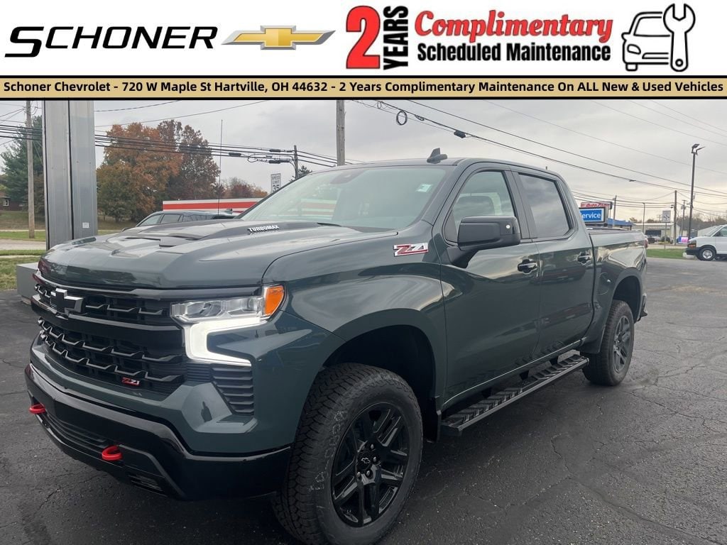 GM Rewards Card Sales Sign Up and Spend Offer: Eligible Customers: New, GM Card customers who apply and get approved for the new GM Rewards Card via a dealership QR code or text to apply functionality, and then spend a minimum of $1000 at the dealership at time of purchase/lease, can use this offer towards the purchase/lease of an eligible new and unused model. Vehicle equipment includes Convenience Package (10-Way Power Driver Seat w/Lumbar, 120-Volt Bed Mounted Power Outlet, 120-Volt Interior Power Outlet, Dual Rear USB Ports (Charge Only), Dual-Zone Automatic Climate Control, Electric Rear-Window Defogger, Heated Driver & Front Outboard Passenger Seats, Heated Steering Wheel, Keyless Open & Start, LED Cargo Area Lighting, Manual Tilt/Telescoping Steering Column, Remote Vehicle Starter System, Theft Deterrent System (Unauthorized Entry), and Wrapped Steering Wheel), Preferred Equipment Group 2LT (12.3 Multicolor Reconfigurable Digital Display, 6-Speaker Audio System, All-Weather Floor Liner (LPO) (AAK), Auto-Locking Rear Differential, Bluetooth For Phone, Color-Keyed Carpeting Floor Covering, Deep-Tinted Glass, Electronic Cruise Control, EZ Lift Power Lock & Release Tailgate, Front LED Fog Lamps, HD Rear Vision Camera, Heated Power-Adjustable Outside Mirrors, High Gloss Black Mirror Caps, Inside Rear-View Mirror w/Tilt, Integrated Trailer Brake Controller, OnStar Services Capable, Performance Red Recovery Hooks, Power Front Windows w/Driver Express Up/Down, Power Front Windows w/Passenger Express Down, Power Rear Windows w/Express Down, Rear 60/40 Folding Bench Seat (Folds Up), SiriusXM w/360L Trial Subscription, Standard Tailgate, Steering Wheel Audio Controls, Teen Driver, Tire Pressure Monitoring System, and Wi-Fi Hot Spot Capable), Protection Package (Chevytec Spray-On Black Bedliner and Rear Wheelhouse Liners), Suspension Package (Heavy-Duty Air Filter and Hill Descent Control), Trailering Package (Hitch Guidance), 8-Speed Automatic, 4WD, Black Cloth, 220 Amp Alternator, 3.42 Rear Axle Ratio, 4-Wheel Disc Brakes, 40/20/40 Front Split-Bench Seat, 6 Speakers, ABS brakes, Air Conditioning, Alloy wheels, AM/FM radio: SiriusXM with 360L, Apple CarPlay/Android Auto, Auto High-beam Headlights, Automatic Emergency Braking, Automatic temperature control, Brake assist, Cloth Seat Trim, Compass, Delay-off headlights, Driver door bin, Driver vanity mirror, Dual front impact airbags, Dual front side impact airbags, Electronic Stability Control, Emergency communication system: OnStar, Following Distance Indicator, Forward Colli Price includes: $1000 - Chevrolet Bonus Cash. Exp. 03/02/2026 $1000 - Chevrolet Trade Assistance Bonus Cash Program. Exp. 03/02/2026 $2500 - Chevrolet Select Market Loyalty Purchase Program. Exp. 03/02/2026 $3000 - Chevrolet Consumer Cash Program. Exp. 03/02/