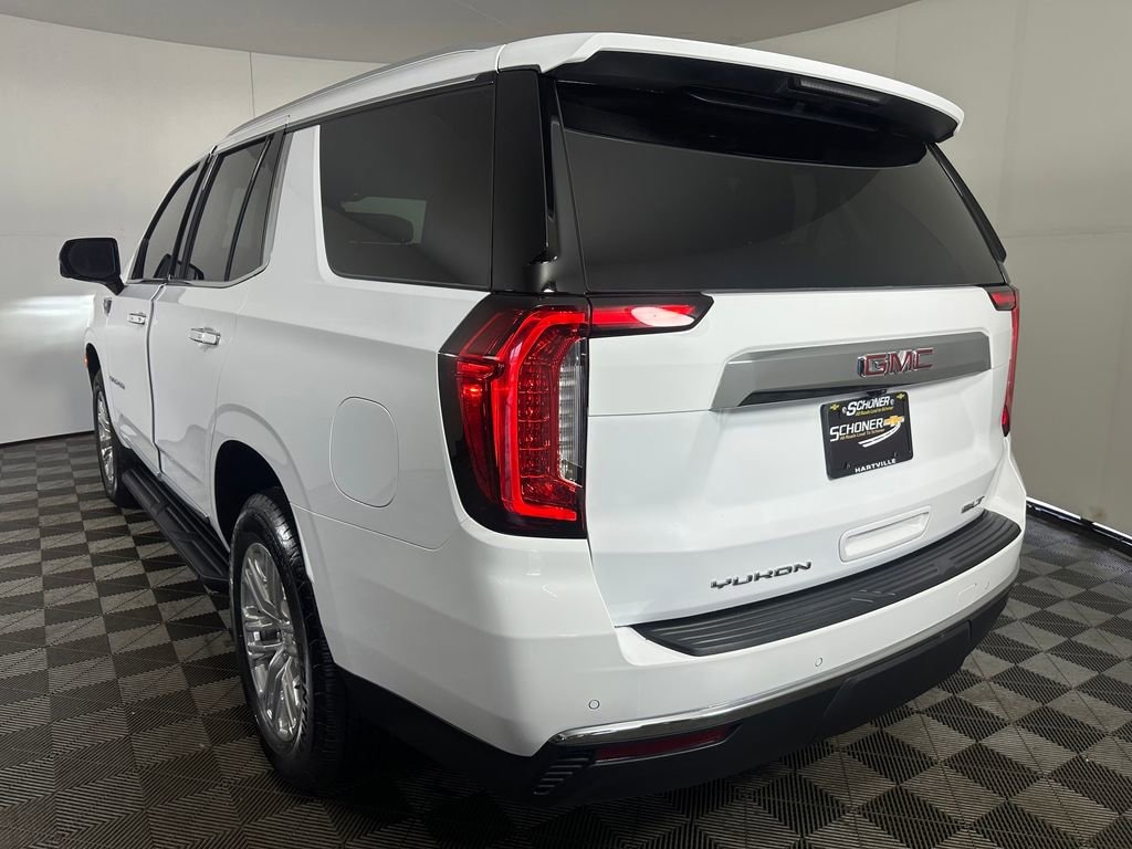 The 2024 GMC Yukon SLT 4x4 is a full-size SUV that blends premium comfort, advanced technology, and impressive capability for families and adventurers alike. Powered by the efficient and powerful Duramax 3.0L turbo-diesel engine and supported by a premium smooth ride suspension with four-wheel drive, the Yukon delivers confident performance on the highway or in challenging conditions. Inside, the spacious cabin features perforated leather-appointed seating with heated and ventilated front seats, tri-zone automatic climate control, and an advanced 10.2-inch GMC infotainment system with Google built-in compatibility, wireless Apple CarPlay, and wireless Android Auto. Entertainment and convenience are elevated with a Bose 9-speaker sound system, wireless charging, remote start, and an available rear-seat media system with dual 12.6-inch HD touchscreens. The SLT Luxury Package adds enhanced comfort with heated second-row seats, a heated steering wheel, memory settings, power-folding third-row seats, and HD Surround Vision. GMC Pro Safety Plus and additional driver-assist technologies like Adaptive Cruise Control and Rear Pedestrian Alert help provide peace of mind on every drive. Combining bold styling, refined comfort, and modern technology, the 2024 Yukon SLT 4x4 is built to handle both everyday driving and long road trips with ease.